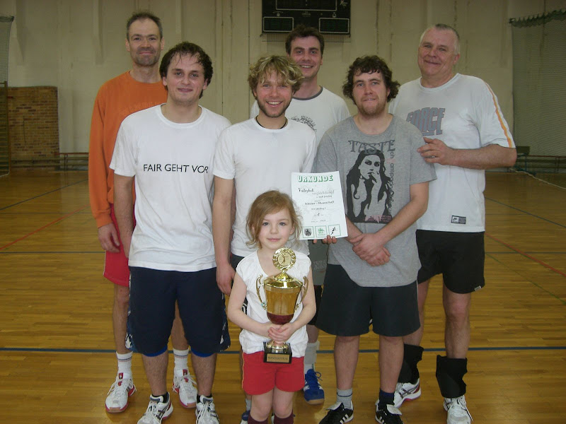 Mit einer großen Überraschung endete das Turnier am Samstag. Nicht die Favoriten von TuS Jüterbog oder „Opium fürs Volk“, sondern die Restetruppe der SSV-Männer stand auf dem obersten Podest. In allen vier Begegnungen setzte sich der SSV-Sechser durch. Die Vereinsvolleyballer gaben in keinem Spiel einen Satz ab. Sie können sich deshalb berechtigt über diesen Erfolg freuen. Zum Siegerteam gehören: Zuspieler Florian Zeige, der Diagonalangreifer Sascha Kubau, die Mittelangreifer Frank Braune und Reinhard Möhring, die Außenangreifer Sebastian Malinowski sowie der Vereinsvorsitzende Marco Dammmüller.
