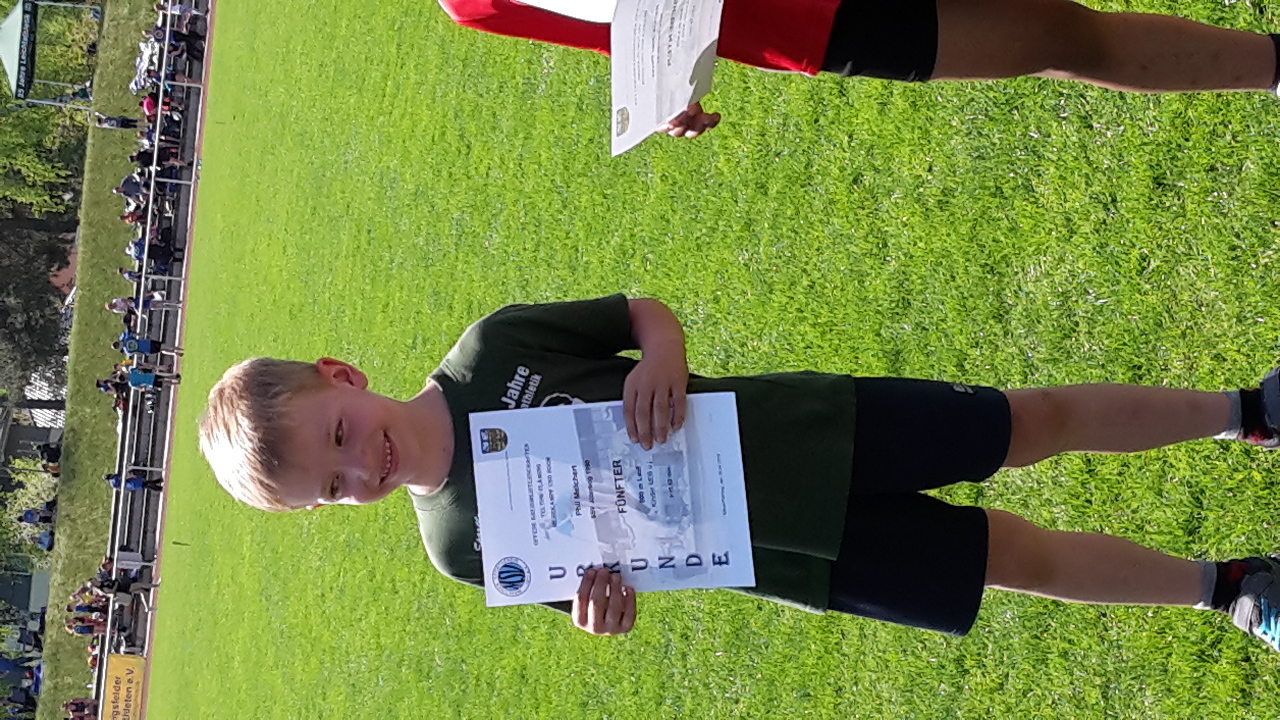 Der jüngste SSV-Teilnehmer, Phill Melchert ( AK 8), konnte sich über eine 6. Platz im Dreikampf sowie einen 5. Platz über 800m freuen. Schließlich war es sein erster großer Wettkampf und er wurde fleißig von seinen Eltern und Oma angefeuert.