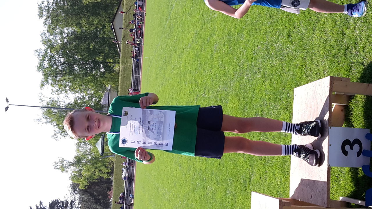 Kreismeister im Mehrkampf (50m, Weitsprung und Ballwurf) wurde Jonas Reichert (AK 10), wobei seine 4,08m im Weitsprung sowie die 42m im Ballwurf zu erwähnen wären. Sein gleichaltriger Trainingskamerad Julian Zigelski erkämpfe einen für ihn sehr guten 6. Platz. Besonders freute er sich über seine neue Bestleistung im Ballwurf mit 30m. Über 800m belegte er einen 3. Platz. Er lief ein beherztes Rennen und konnte auf den letzten 200m noch einmal einen schönen Endspurt hinlegen.
