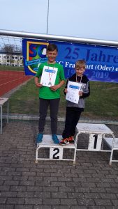 So konnte Jonas Reichert ( AK 11) in seinem ersten 60m-Hürdenwettkampf einen guten 4. Platz belegen. Über 50m belegte er einen sehr guten 2. Platz in 8,65 sec. Sein gleichaltriger Trainingskamerad Julian Ziegelski erreichte über 50m das B- Finale und wurde in 8,15 sec Neunter. Im Weitsprung ereichte Julian Bestleistung mit 3,99m, zwar ein undankbarer 4. Platz, aber die Leistung entschädigte alles.