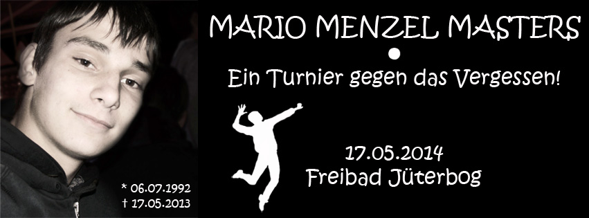 Am 17. Mai 2013 verlor der SSV Jüterbog 1990 e.V. nicht nur ein Vereinsmitglied, sondern auch einen begnadeten Volleyballer, Mannschaftskollegen und Freund. Heute, ein Jahr nach dem Tod des 20-jährigen Mario Menzel möchte der Verein an seine Geschichte erinnern und Mario zu Ehren die ersten Jüterboger Mixed-Meisterschaften des Jahres im Beachvolleyball veranstalten. Diese tragen aber nicht nur seinen Namen, sondern sollen auch etwas Gutes tun. Die Einnahmen der Startgebühren werden an die Deutsche Krebshilfe gespendet.