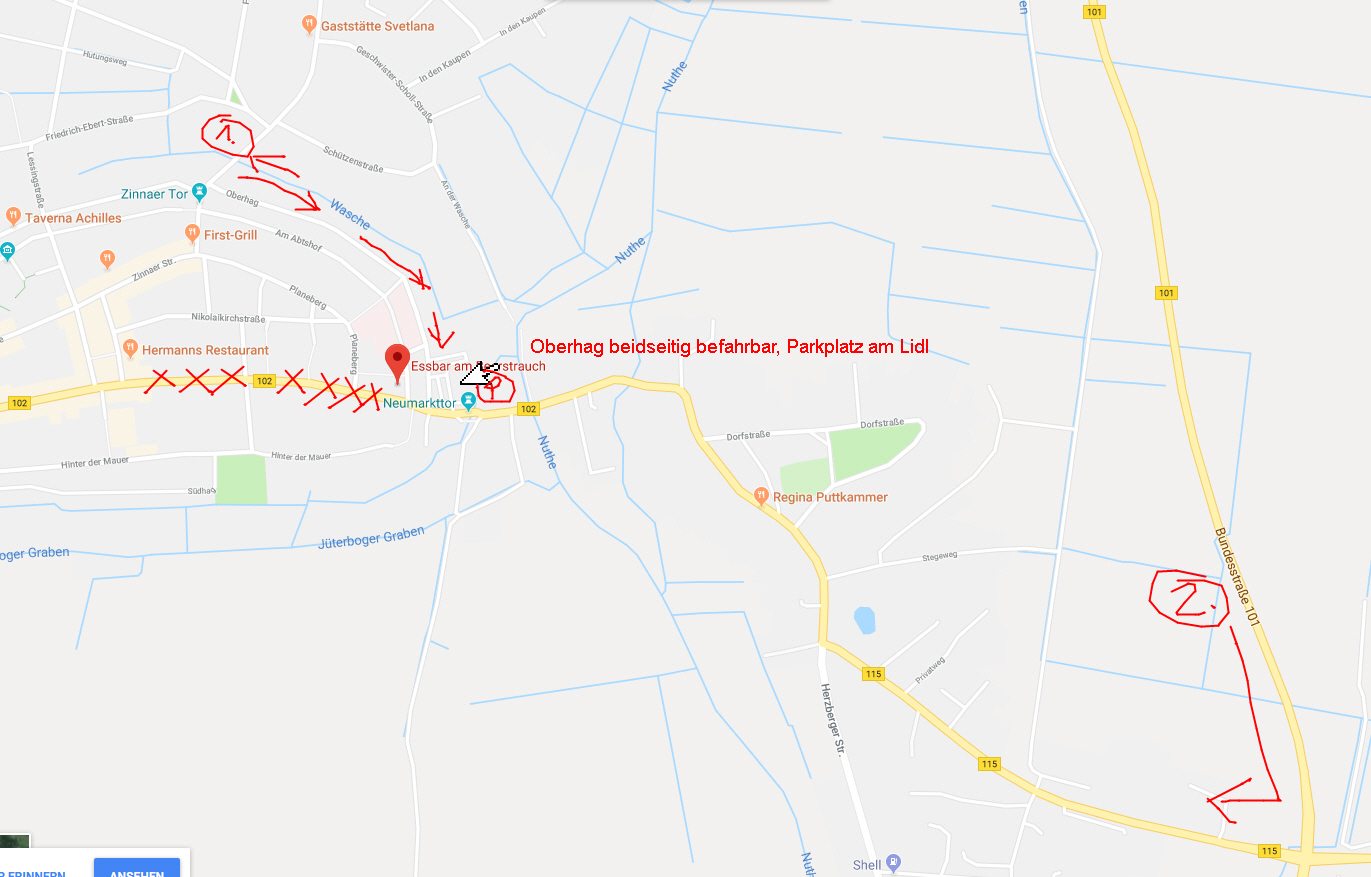 ich bitte um Beachtung der Straßensperrung Große Straße! Das heißt man erreicht den Parkplatz bei Lidl nur